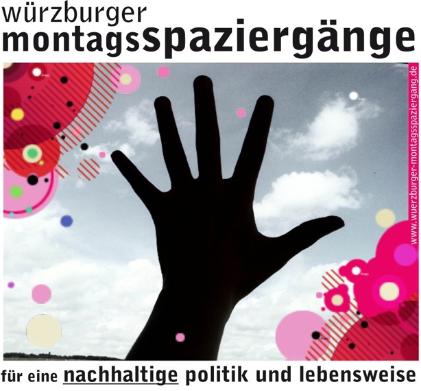 sind wir montagsspaziergänger „nur noch“ gelegentlich am start, wenn die aktuelle politische lage mal wieder unsere hutschnüre platzen lässt, uns nachhaltige initiativen um „demo-unterstützung“ bitten oder die rassisten von pegida ihre menschenverachtenden parolen in würzburg kundtun.